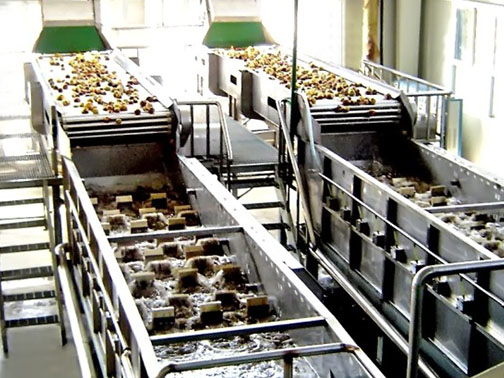 Through the fruit sorting process, fruits are put into automaticfloating washing machine, dial plate constant running by rotating the propeller shaft, the fruit in accordance with the circulating water flow direction and speed up the rotation, increasing the movement of fruits in the limited space, increasing the cleaning time of the fruits, making fruits speed up the rotation, and increasing the washing intensity of the water flow, increasing mutual flexible convection of fruits, and resultin a more thorough cleaning effect.