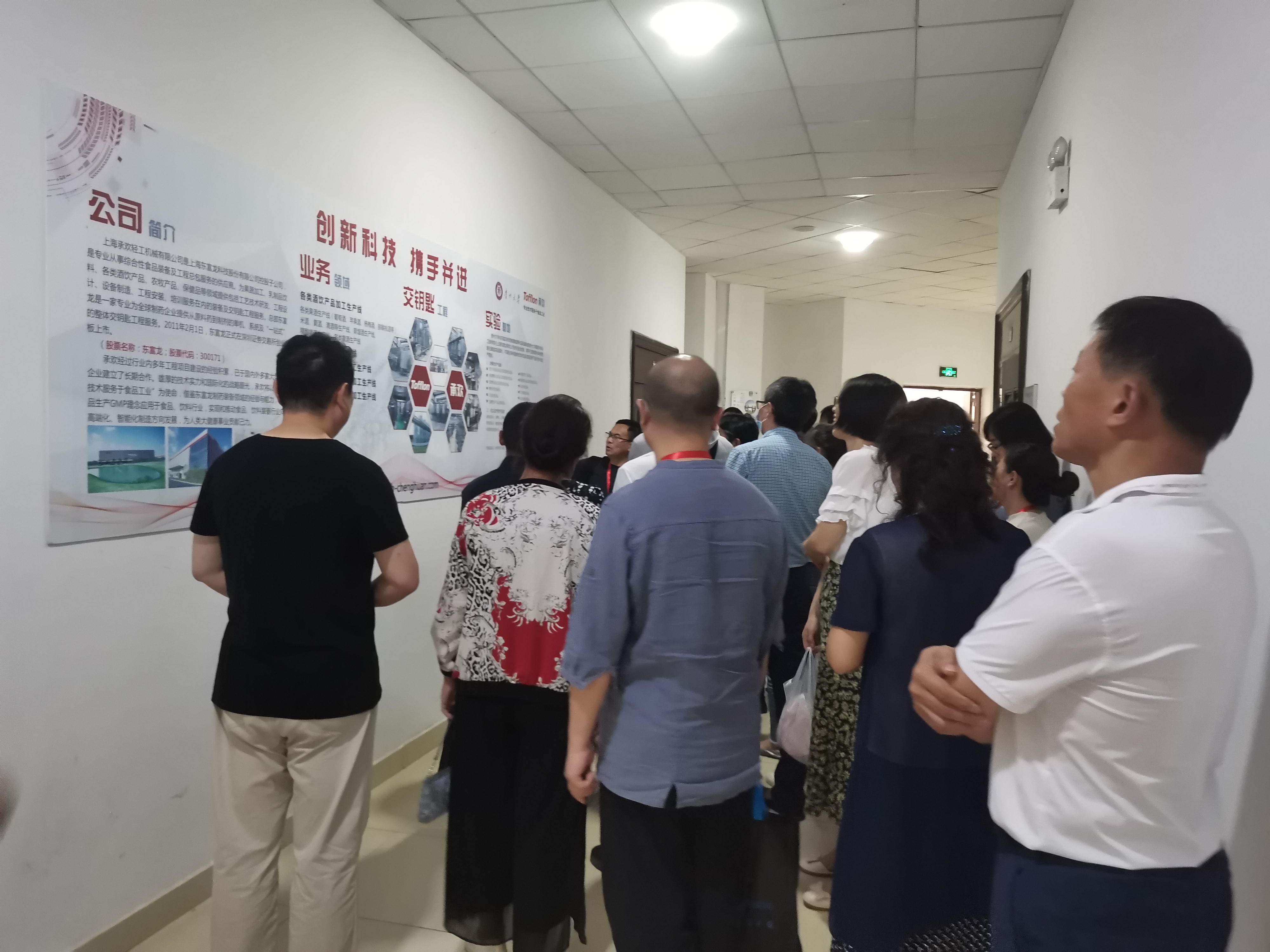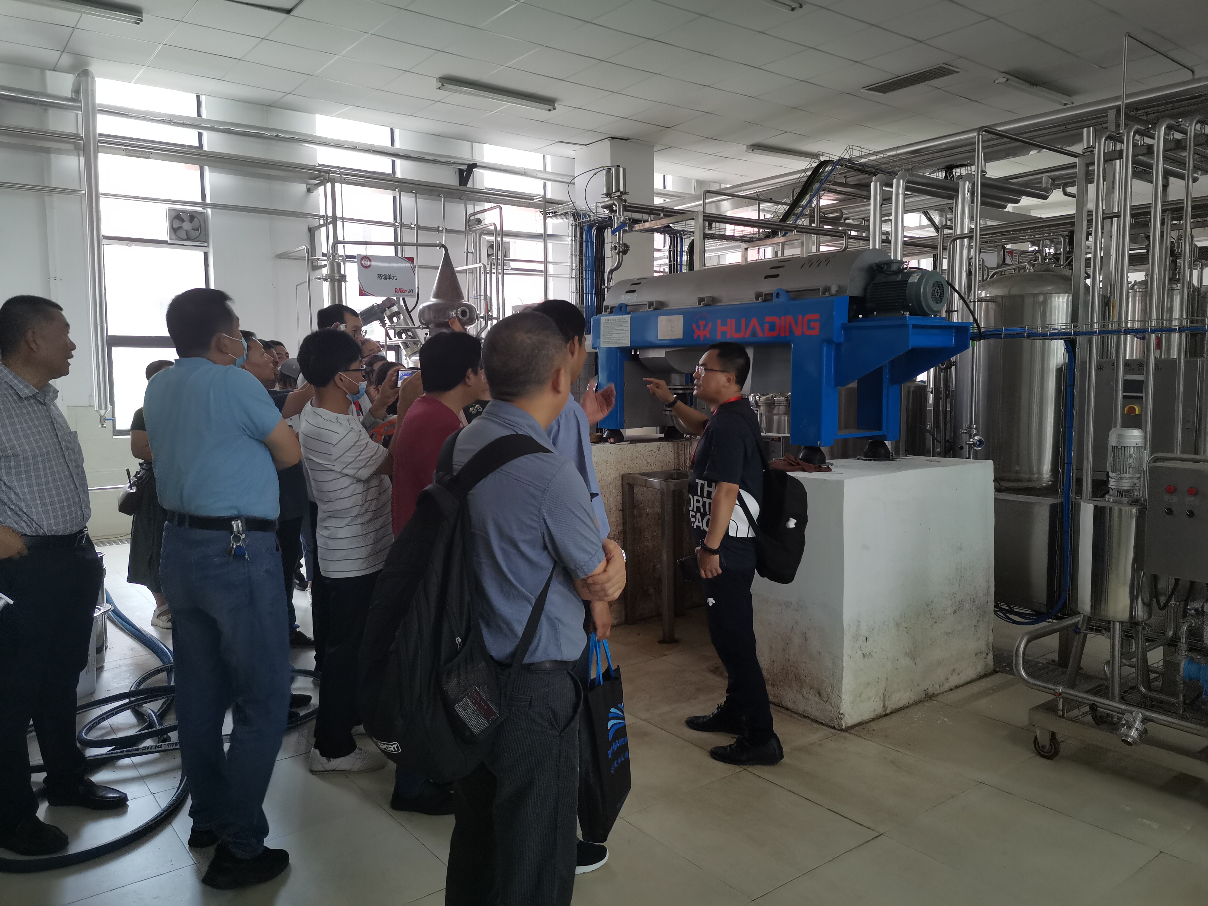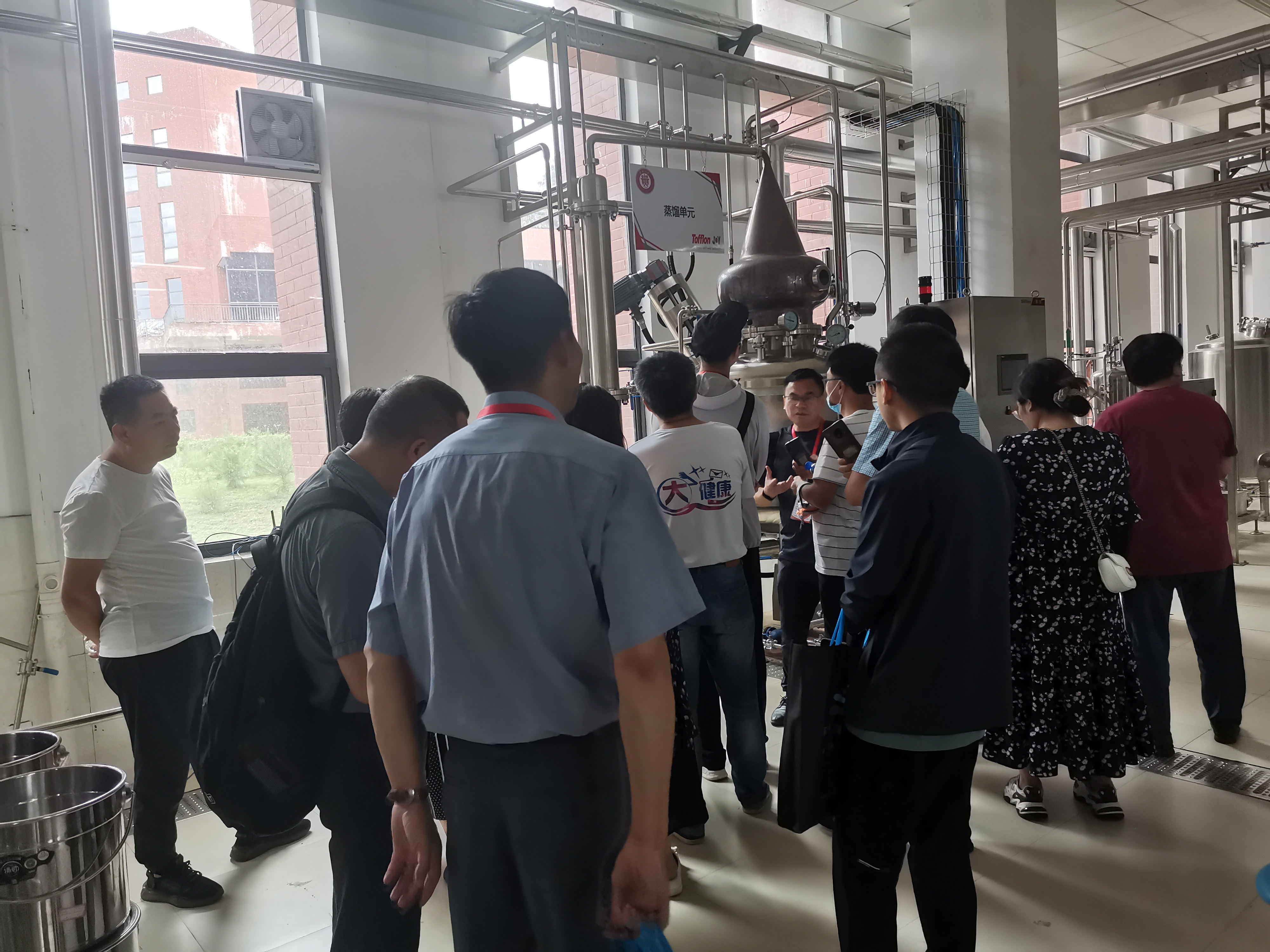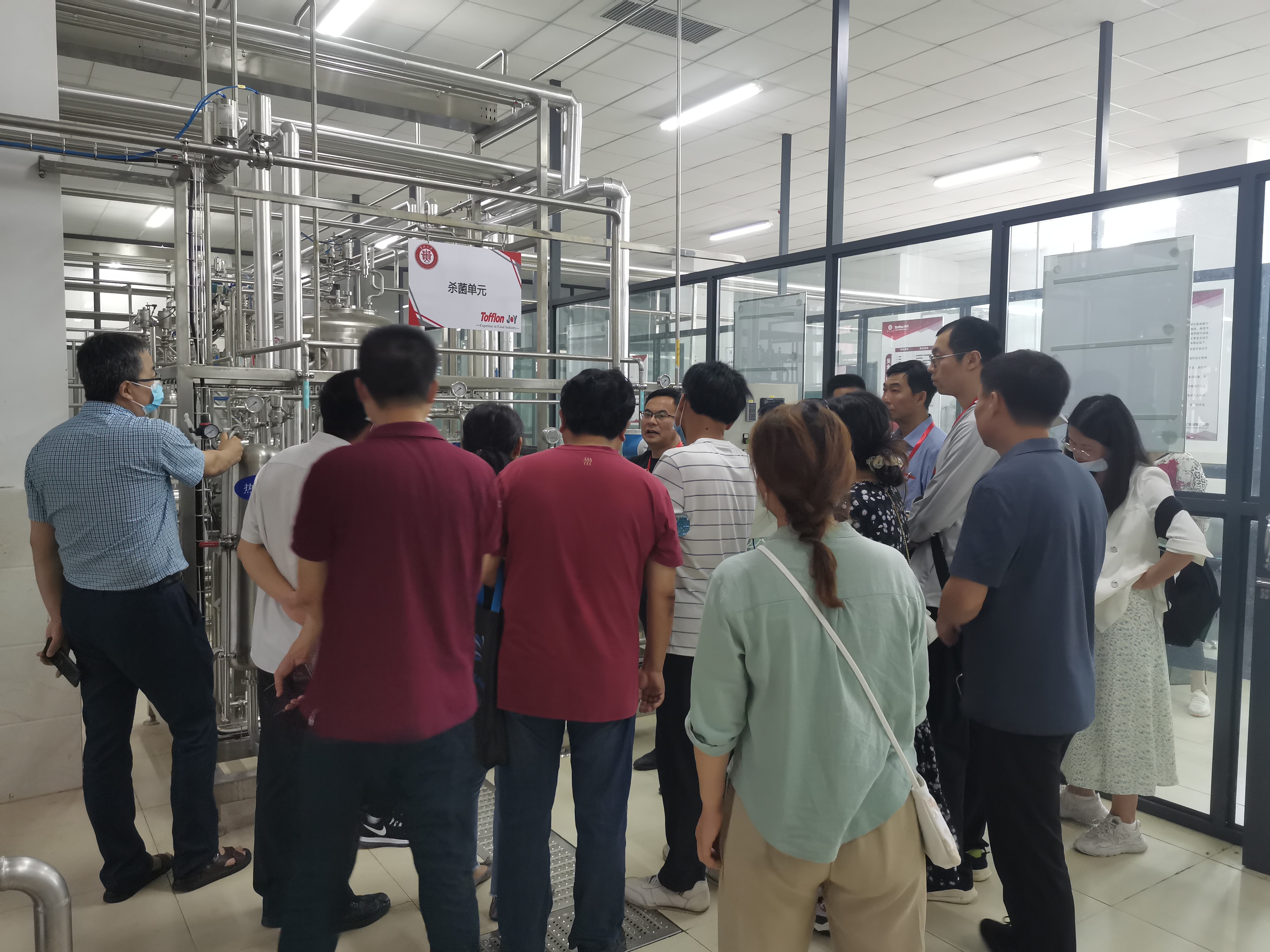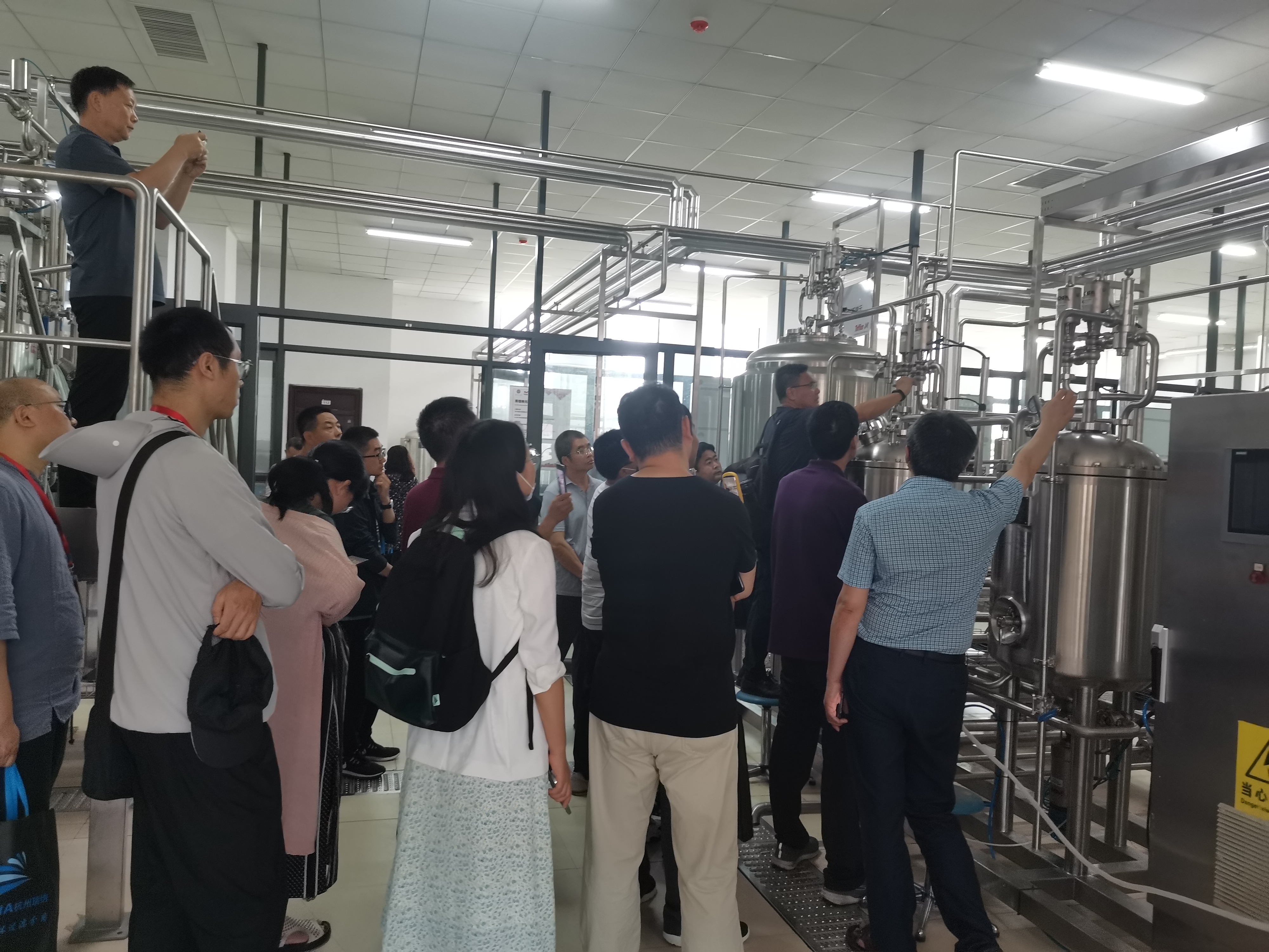 會議結束后,上海東富龍承歡組織部分參會代表及專家學者來到貴州大學-上海東富龍承歡智能釀造孵化基地,參觀了酒飲綜合中試線。上海承歡總工杜蘇峰從酒飲生產線的設備配置、產品種類、出料規格、工藝流程等方面做出詳細介紹,參觀過程中大家踴躍提問,現場氣氛異常活躍。