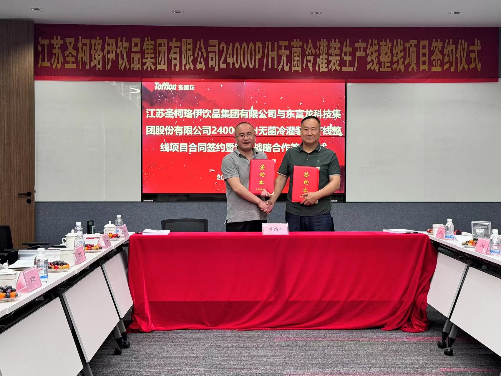 東富龍食品工程非常榮幸能和圣柯珞伊飲品集團達成戰略合作,也特別感謝圣柯珞伊飲品集團張董、趙董、王總等管理團隊對東富龍食品工程的信任和厚愛!我們將充分發揮雙方在各自領域的優勢,實現資源共享,共同探索多元化、多渠道的產品和企業合作!共同打造高標準的無菌冷灌裝柔性生產線示范工廠,攜手為飲料行業的高質量發展貢獻力量!