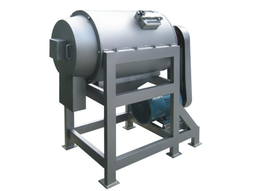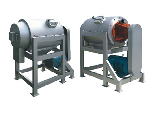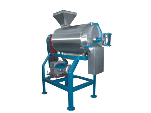上道工序來的物料進入頭道物料桶內,主軸帶動葉輪高速旋轉,物料被葉輪帶動與篩網摩擦擠壓,使得果肉,汁與皮、核、籽分離。肉和汁通過篩網上的小孔進入下道工序,皮和籽則向軸端推進經過排渣口排出。