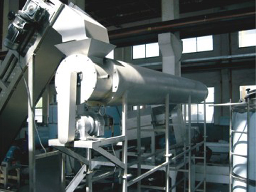 該機是螺旋推進式連續軟化處理設備,在果蔬打漿之前為了提高水果的出漿率和出漿質量,防止褐變,必須進行軟化處理。將經過洗凈后的果蔬,在預煮機內進行高溫蒸煮軟化,本機可通過調速改變預煮時間以適應不同果蔬的軟化。