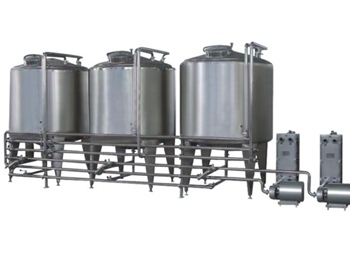 清洗液的加熱為自動(dòng)加熱方式,通過(guò)溫度控制儀設(shè)定清洗溫度,控制蒸汽調(diào)節(jié)閥的開(kāi)啟量來(lái)限制蒸汽的量從而使清洗液維持在所需的溫度;CIP站各罐內(nèi)液位的高低采用自動(dòng)報(bào)警并指示;當(dāng)清洗液的濃度降低時(shí),通過(guò)人工補(bǔ)加濃酸濃堿;清洗過(guò)程轉(zhuǎn)換通過(guò)人工操作相應(yīng)的管路閥門(mén)進(jìn)行;罐內(nèi)缺水時(shí)進(jìn)行人工補(bǔ)水;