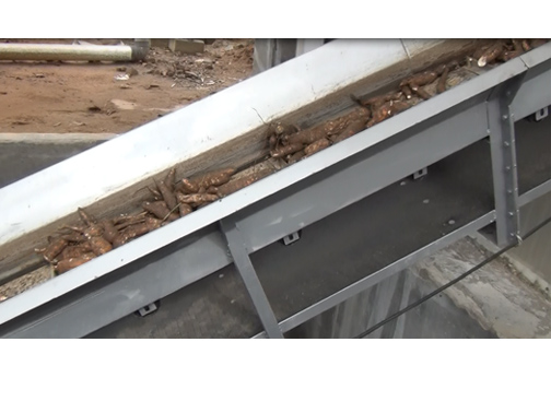 主動力無極變速;主動輥為膠輥,開有導向槽,配合皮帶上的導條,有效防止帶跑偏;可外加清掃裝置。通過輸送帶連續或間歇運動來輸送物品。