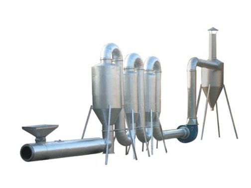 風(fēng)機(jī)啟動,通過換熱器的熱風(fēng)進(jìn)入風(fēng)管,此時,被干燥的物料由加料器、揚(yáng)升器送入風(fēng)管,在熱交換的作用下,水分離開淀粉顆粒,經(jīng)風(fēng)機(jī)排排出室外,干燥的淀粉由通過旋風(fēng)分離器收集,進(jìn)入料斗,由關(guān)風(fēng)可送出。