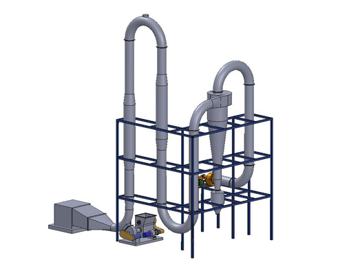 該設(shè)備由干燥管、換熱器、風(fēng)機(jī)、關(guān)風(fēng)機(jī)、加料器、揚(yáng)升器及旋風(fēng)分離器等組成。